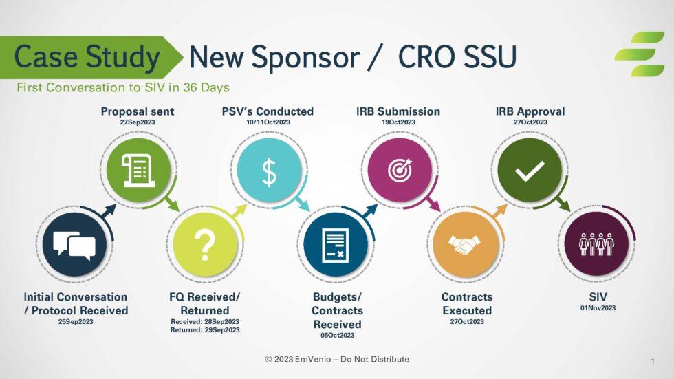 At EmVenio, we understand that the start-up phase of a clinical trial can often be a time-consuming process (not to mention the years of development before the trial can begin). However, we are proud to share that our team has been able to shorten the timelines for a recent study to 36 days. By leveraging our established sites and expertise in the field, we were able to successfully streamline the start-up procedure, allowing for a more efficient and expedited process.