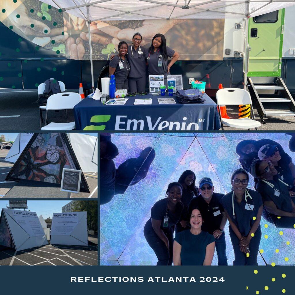 At EmVenio, we believe community intervention is the first step to creating inclusivity and trust in clinical research. This month, we had the privilege of meeting community members of the Greater Atlanta area at “Reflections Atlanta: Illuminating Diversity in Medicine Through Art.” This event in the outskirts of Downtown Atlanta featured interactive art installations, allowing attendees to explore how personal stories can shape the future of medicine and discover how art can highlight the importance of diverse clinical trials.